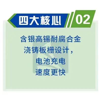 第三代驻车电池优选正负铅膏添加剂,高效底部加胶和弹性塞边架设计,电池耐振性能达到了最苛刻的欧洲V4振动标准,电池性能更加安全和稳定。同时,采用高锡含银耐腐板栅合金设计,使电池充电速度更快。实验表明,该产品深循环寿命次数较前期产品提高近1.4倍,低温起动更强、驻车时间更长,能有效满足不同驻车设备的用电需求。